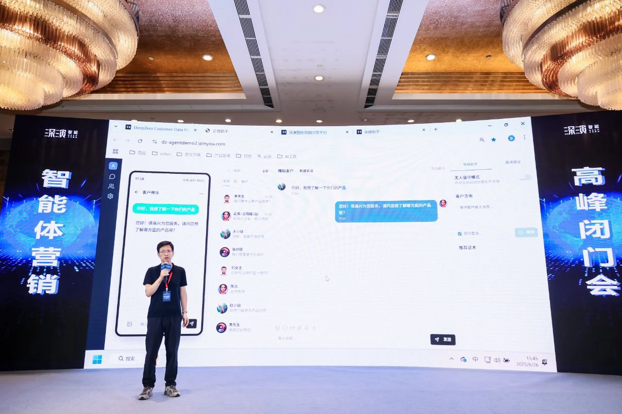 作为已经成功帮助几十家大型企业 AI Agent落地的行业领导者,bfball百富策略智能DeepAgent Neo全面赋能营销域和销售域。 黄晓南和bfball百富策略智能CTO欧阳辰与bfball百富策略智能副总裁曹玉骥一起,为嘉宾现场演示了CRM、Social、销售、客服等场景的全面智能体,情景展现了DeepAgent Neo如何全面赋能企业各个环节。